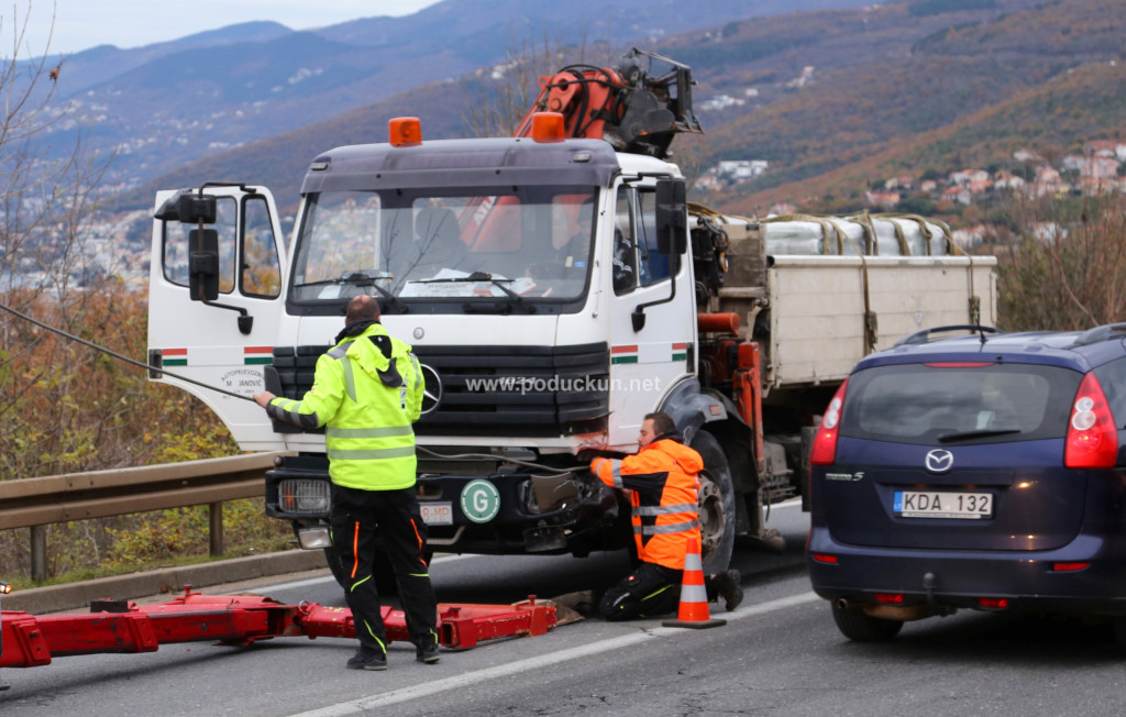 Matulji - Dežurne službe na području Liburnije subotnje jutro otvorile su intervencijom na zaobilaznici. Naime, na vijaduktu kod čvora Matulji dogodio se sudar osobnog vozila i kamiona, a uz vatrogasce na mjesto nezgode je stigla i hitna pomoć.