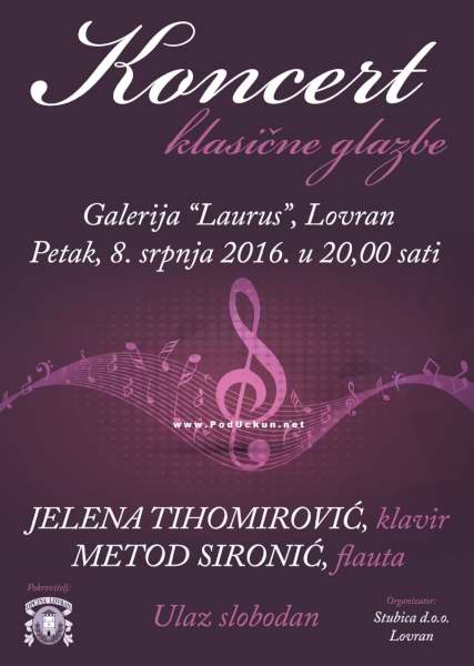 Lovran - U petak, 8. srpnja s početkom u 20 sati, u galeriji Laurus, održat će se koncert klasične glazbe.