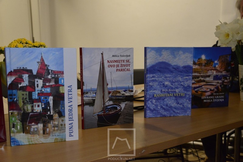 Lovran – Sinoć je u prepunoj galeriji Laurus Katedra čakavskog sabora Lovran predstavila četiri knjige. Knjige nastajale tijekom korona razdoblja tek sad su dobile zasluženu promociju, a publika pristigla u Lovran sa svih stana našeg kraja imala je prilike guštati u zbirci čakavske poezije ''Puna jedra vetra'',zatim „Rashitani vetri“, Marije Benzan, „Nasmejte se, ovo je život parićal“ autorice Milice Tuševljak i „Lovranu, gradu mojga živjenja“ Marije Aničić. U uvodnom govoru je Cvjetana Miletić predstavila sve tri autorice i njihovo ranije stvaralaštvo, a vrijedi istaknuti da su knjige objavljene u sklopu biblioteke “Liburnijski lapiš” Katedre čakavskog sabora Lovran na čijem je čelu do nedavno novi predsjednik Frane Babić.