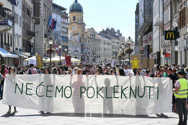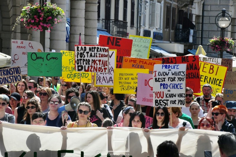 - Godina je 2018. U Hrvatskoj se skupljaju potpisi za referendum kojim bi se trebalo otkazati Konvenciju Vijeća Europe o sprečavanju i borbi protiv nasilja nad ženama i nasilja u obitelji. Hod za život prvi put dolazi u Rijeku. Na stranu otpora tom činu staje više od dvije tisuće Riječanki i Riječana. Godina je 2022. Američki Vrhovni sud poništava povijesnu presudu čija je posljedica ta da milijuni žena u SAD-u gube pravo na pobačaj. U Hrvatskoj, ustajemo radi Mirele Čavajda koja je hrabro progovorila o svom stravičnom iskustvu uskraćivanja zdravstvene zaštite, omalovažavanja i maltretiranja u sustavu javnog zdravstva. Istovremeno, u Zagrebu, a kasnije i drugim hrvatskim gradovima, na glavnim se gradskim trgovima u molitvi skupljaju muškarci koji, u okviru projekta “Muževni budite”, zagovaraju da je na djelu - Ugroza muškaraca, poručili su organizatori iz inicijative Građanke i građani Rijeke.