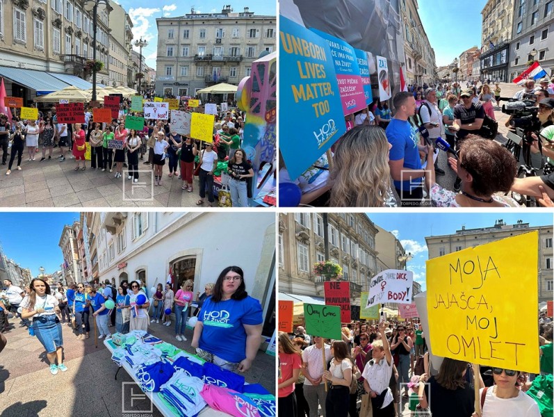'Rijaka - dvije kolone okupljene u Hod za slobodu i Hod za život paralelno su krenule s riječkog Korza. Okupljanje pristalica Hoda za život okupili su se ispod Gradske ure na Korzu i krenuli prema Jelačićevom trgu, dok je Hod za slobodu krenuo prema Jadranskom trgu.