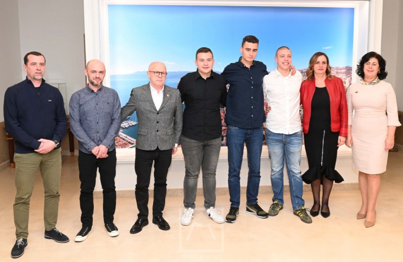 Rijeka - Župan Zlatko Komadina primio je učenike Prometne škole u Rijeci, Amela Topića, Antu Vukušića i Adina Solaka u pratnji ravnateljice Mire Žepine i razrednika Denisa Vranekovića i Igora Veselija i čestitao im na nesebičnom i herojskom činu pomaganja u gašenju požara koji je izbio u ponedjeljak u hostelu na riječkom Korzu.