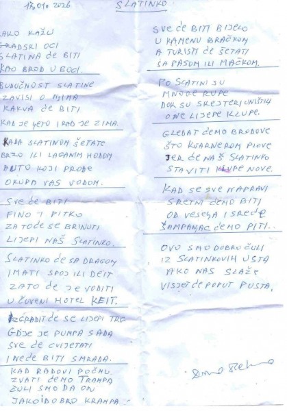 Lik i poruku pusta na duhovit je način dodatno oživio Dino Đelmo, koji je tom prigodom pročitao svoju prigodnu pjesmicu pod nazivom „Slatinko“