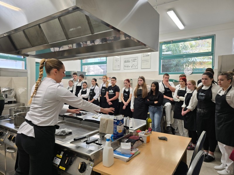 U pratnji ravnateljice Sibile Roth te nastavnika Nikoline Marčelje Pošćić, Aleksandre Miljević i Davora Capana, gosti su održali praktične radionice iz kuharstva i sommelierskih vještina.