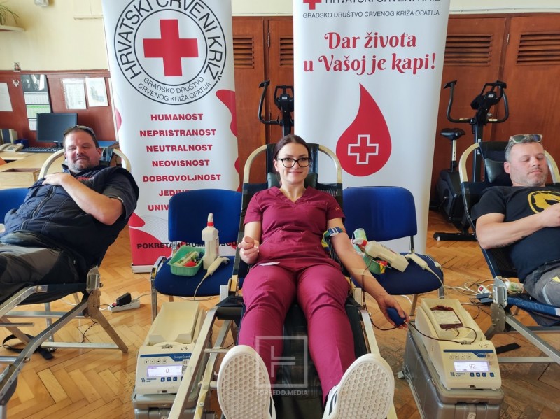 Lovran - Gradsko društvo Crvenog križa Opatija uspješno je organiziralo i ove godine dvije akcije dobrovoljnog darivanja krvi u jednom danu. Najprije je to organizirano u prijepodnevnim satima na Fakultetu za menadžment u turizmu i ugostiteljstvu u Iki s ciljem da se potakne mlade na korisnost darivanja krvi i opće zdravlje ljudi. Svoju krv darovalo je 13 darivatelja. Darivatelja krvi kojima bi to bilo prvo darivanje u ovoj akciji nije bilo. Valentina Brestak iz Sv. Ivana Žabno, Jelena Đurkin Badurina iz Kastva i Noa Kuprešaković iz Zagreba krv su dali po drugi put. Slijede ih Iva Kovačević iz Rijeke i Romina Agbaba iz Rijeke, darovale su krv četiri puta, Luka Gregur iz Čakovca šesti put, Martina Jašovac iz Rijeke i Daniela Soldatić Frleta iz Rijeke darovale su sedmi puta, Ana Smoljanec iz Novog Marofa darova je krv osmi put, Ivan Babok iz Valpova 16. put te Damir Šepić iz Mošćeničke Drage darovao je krv 21. put.
