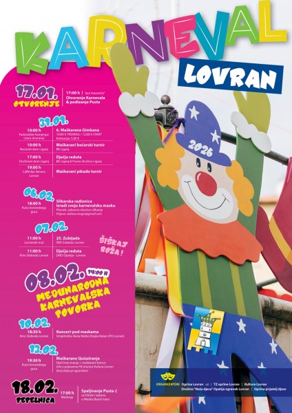Maškarano ludilo u Općini Lovran završiti će 18. veljače u Medveji kada će Pust odgovarati za sve nedaće čime se najavljuje ulazak u, nadamo se, uspješno proljeće a onda i uspješnu sezonu.
