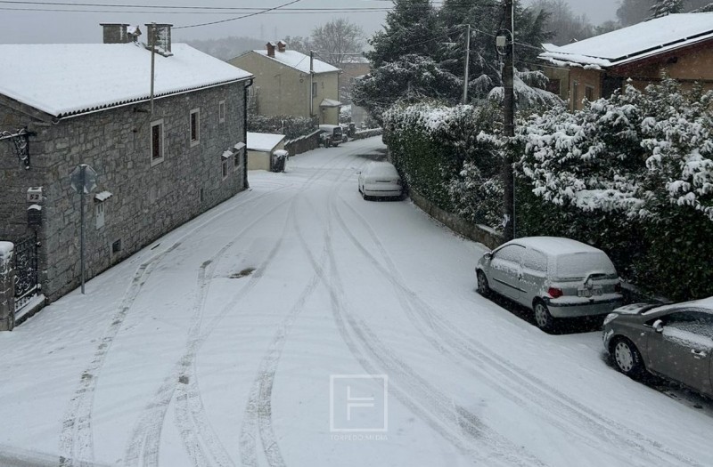 Rijeka – Snježne oborine tijekom dana zahvatile su veći dio Hrvatske. Snijeg mjestimice pada u Lici, Gorskom kotaru, sjeverozapadnoj Hrvatskoj i Slavoniji, a slabiji intenzitet zabilježen je i u kvarnerskom priobalju. Dok na samoj obali uglavnom pada razmočeni snijeg, viši dijelovi Kastavštine i liburnijskog krasa poprimili su pravi zimski izgled.