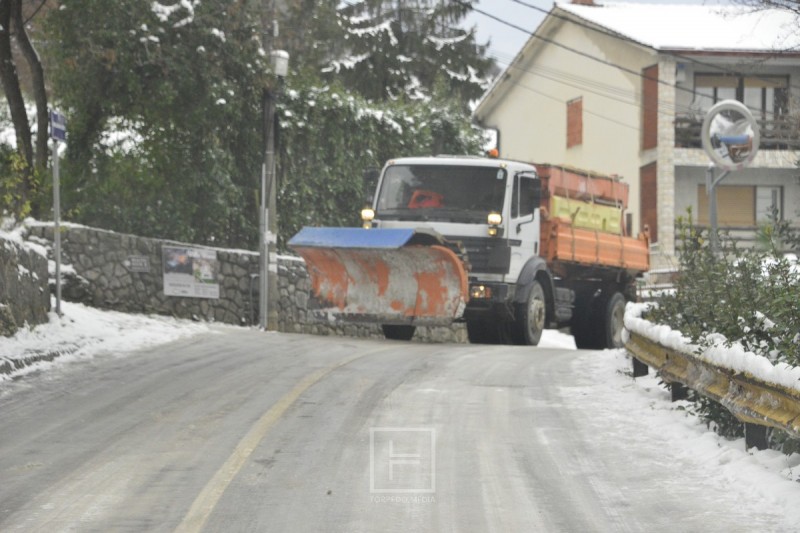 Opatija/Lovran/Mošćenička Draga - Obilne snježne padaline prouzročile su velike probleme u prometu na cijeloj Liburniji, a komunalne službe suočavaju se s ozbiljnim poteškoćama u čišćenju i posipavanju cesta. Zbog količine snijega Komunalac trenutačno ne može u potpunosti izvršavati zimske radove na svim prometnicama.