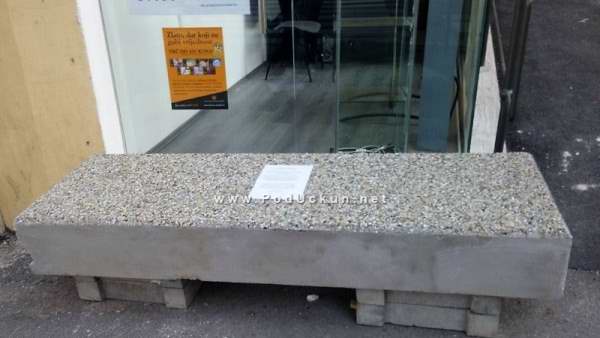Opatija – Ovu skulpturu - klupu postavio je 18. srpnja 2016. godine Grad Opatija, radi onemogućavanja korištenja bespravne gradnje (ostakljeni poslovni prostor iza klupe), koju je na nekretnini u vlasništvu Grada Opatije, u vremenu od 13. do 15. srpnja 2016. godine bez bilo kakvog pravnog osnova te uz protivljenje Grada Opatije, na zemljištu u vlasništvu Grada Opatije izgradio gospodin Edin Delibegović. Poruka je to koju su na kamenoj barikadi kojom je zapriječen ulaz u poslovni prostor pokraj Konzuma na Slatini ostavili komunalni redari koji su ''skulpturu'' postavili u noćnim satima s nedjelje na ponedjeljak.