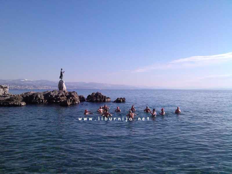 Opatija – Dvanaest hrabrih kupača ušlo je točno u 12 sati i 12 minuta danas – 12. prosinca 2012. godine – u more pod kipom Djevojke s galebom, a sve s ciljem da provjere hoće li i ostali ''parametri'' pratiti ovu simboliku u znaku ''dvanaestice''. I jest – temperatura mora iznosila je točno 12 stupnjeva, što su bez dvojbe utvrdili nakon 12 minuta provedenih u njemu...
